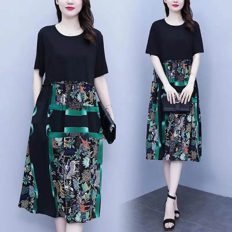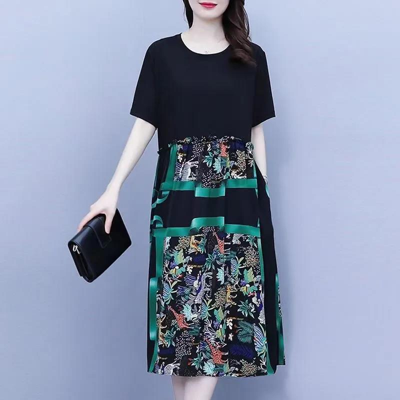 穿搭省心王 ,上黑下綠印花裙 ,腰間抽繩藏小肚 ,圖案精緻吸睛 ,日常 度假都能穿
