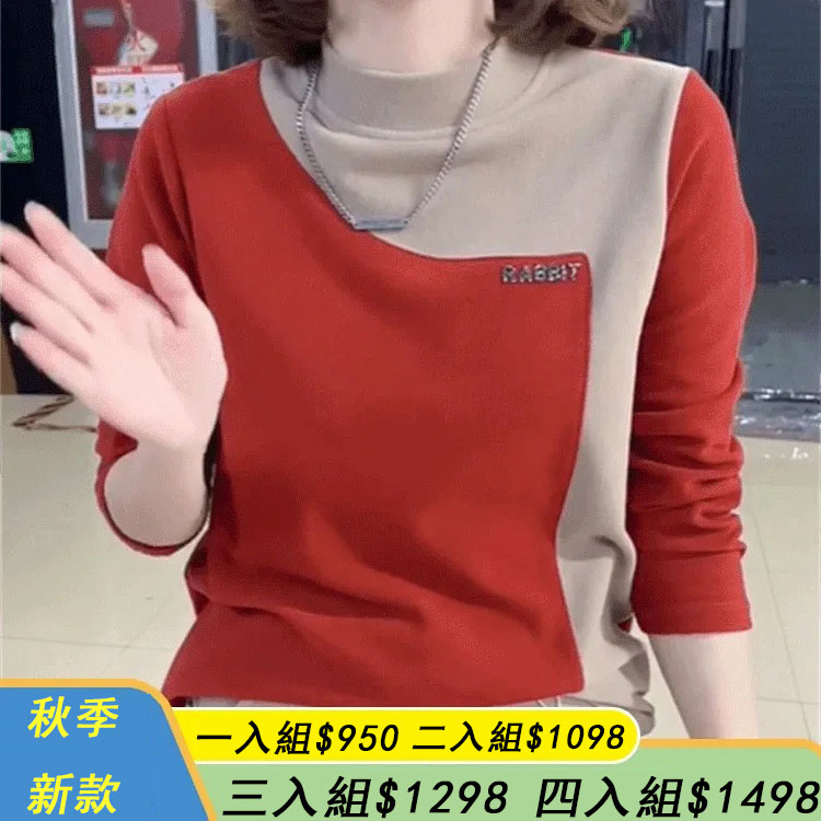 2025新款德絨撞色打底衫,買一送一,親膚面料,雙面德絨,舒適保暖,寬鬆下擺不束縛